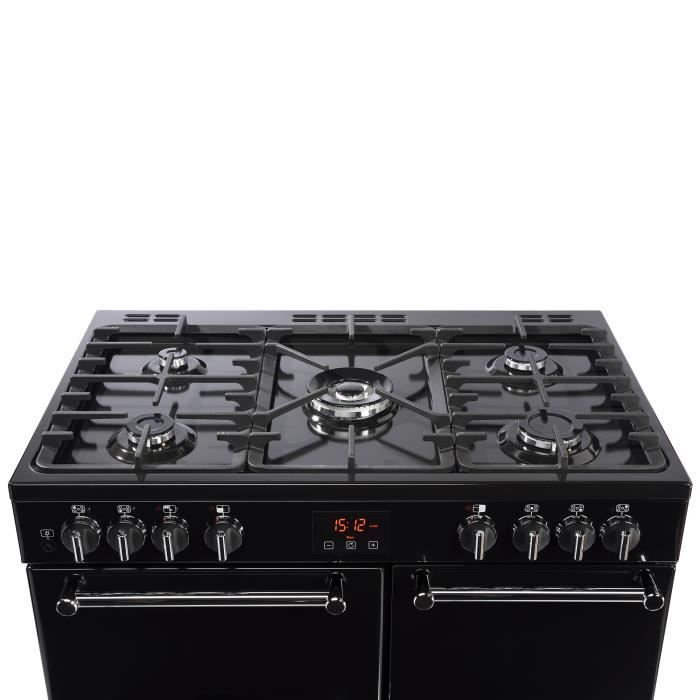 Performant avec un design traditionnel, ce piano de cuisson a tous les atouts pour plaire aux cuisiniers amateurs ou professionnels. Il est doté d’un plan de cuisson avec 5 foyers gaz dont un wok, 3 fours électriques, les fonctions décongélation, mijotage et programmateur digital.