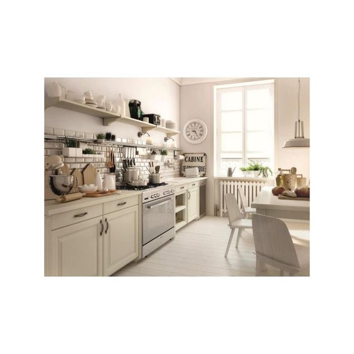 Piano de cuisson – Four gaz – 3 modes de cuisson dont Gril + tournebroche – Gril électrique 2 kW – Minuteur sonore 60 minutes – Allumage électronique »bouton » – Eclairage – Panneaux catalytiques autonettoyants – Gradins fils – Contre-porte plein verre avec verre démontable – Porte 2 vitres – Tournebroche – Allumage de la table électronique »bouton »- 5 brûleurs dont 1 triple couronne 3,8 kW – Sécurité gaz par thermocouple – Grilles fonte – Départ de crédence – Coffre de rangement chauffe-plat – Plinthes cache-pieds noires de série