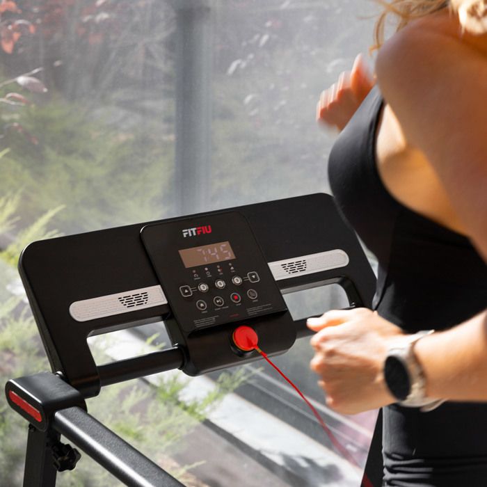 Le tapis de course MC-100 de FITFIU Fitness est l’appareil cardio idéal pour l’entraînement à domicile. Avec son moteur de 1500W, sa vitesse allant jusqu’à 12km/h et son inclinaison réglable, il vous offre un défi permanent. Connectez votre appareil via l’application KINOMAP APP, profitez d’une musique motivante grâce à ses haut-parleurs Bluetooth. Compact, pliable et doté de roues de transport, il est parfait pour les petits espaces – repoussez vos limites et atteignez vos objectifs avec le MC-100!