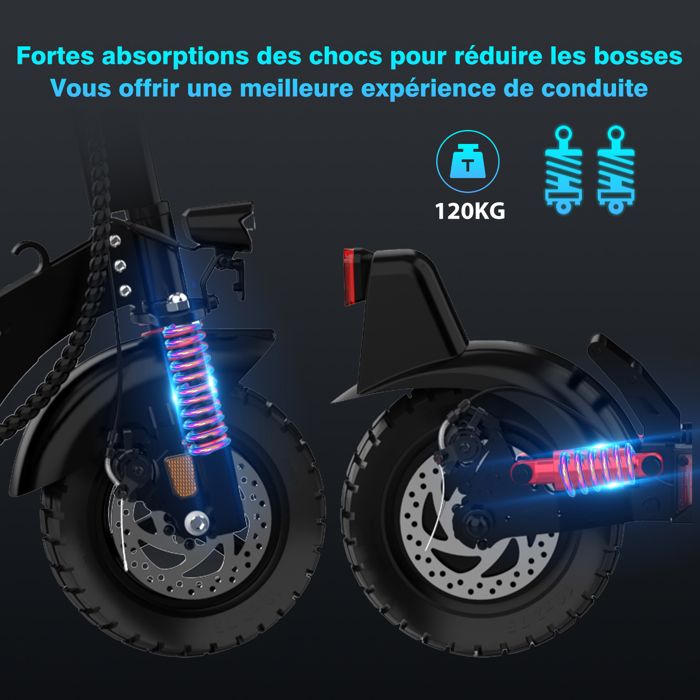 Trottinette Électrique Pliable – HITWAY – Pneus gonflables 10″ – 500W – APP – Batterie 48V 15.6Ah – Scooter NoirRouge